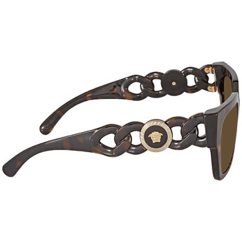 Versace Sunglasses. Series number: 0VE4409. Color code: 108/73. Shape: Square. Lens Width: 53 mm. Lens Bridge: 19 mm. Arm Length: 140 mm. 100% UV protection. Frame Material: Plastic. Frame Color: Havana. Lenses Type: Dark Brown. Rim Style: Full-Rim. UPC/EAN code: 8056597524308. Versace Dark Brown Square Ladies Sunglasses VE4409 108/73 53.