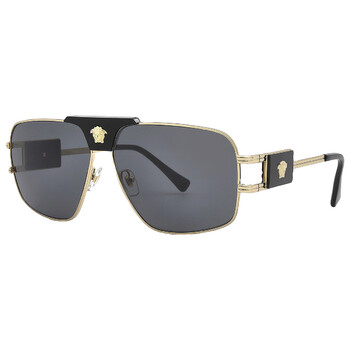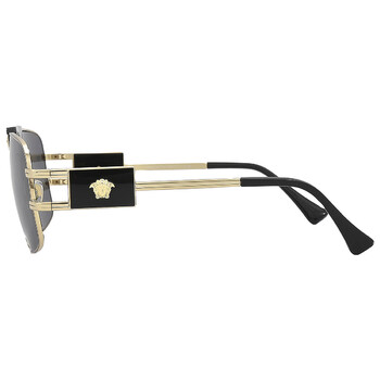 Versace Sunglasses. Series number: VE2251. Color code: 100287. Shape: Navigator. Lens Width: 63 mm. Lens Bridge: 12 mm. Arm Length: 145 mm. 100% UV protection. Non-Polarized. Frame Material: Metal. Frame Color: Gold. Lenses Type: Dark Gray. Rim Style: Full-Rim. UPC/EAN code: 8056597729840. Versace Dark Gray Navigator Men's Sunglasses VE2251 100287 63.