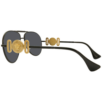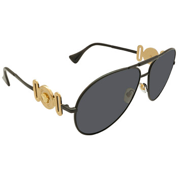 Versace Sunglasses. Series number: 0VE2249. Color code: 126187. Shape: Pilot. Lens Width: 65 mm. Lens Bridge: 14 mm. Arm Length: 145 mm. 100% UV protection. Non-Polarized. Frame Material: Metal. Frame Color: Matte Black. Lenses Type: Dark Gray. Rim Style: Full-Rim. UPC/EAN code: 8056597685986. Versace Dark Gray Pilot Unisex Sunglasses 0VE2249 12618765.
