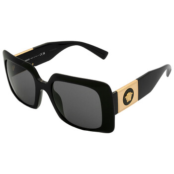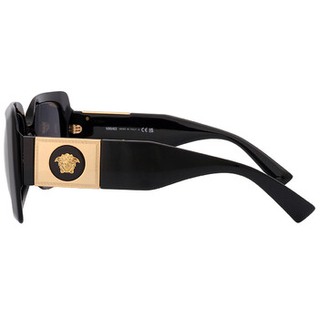 Versace Sunglasses. Series number: VE4405. Color code: GB1/87. Shape: Rectangular. Lens Width: 54 mm. Lens Bridge: 22 mm. Arm Length: 140 mm. 100% UV protection. Non-Polarized. Frame Material: Plastic. Frame Color: Black. Lenses Type: Dark Gray. Rim Style: Full-Rim. UPC/EAN code: 8056597384872. Versace Dark Gray Rectangular Ladies Sunglasses VE4405 GB1/87 54.