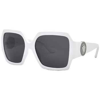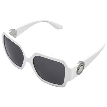 Versace Sunglasses. Series number: VE4453. Color code: 314/8. Shape: Square. Lens Width: 56 mm. Lens Bridge: 17 mm. Arm Length: 135 mm. 100% UV protection. Non-Polarized. Frame Material: Plastic. Frame Color: White. Lenses Type: Dark Gray. Rim Style: Full-Rim. UPC/EAN code: 8056597894821. Versace Dark Gray Square Ladies Sunglasses VE4453 314/87 56.