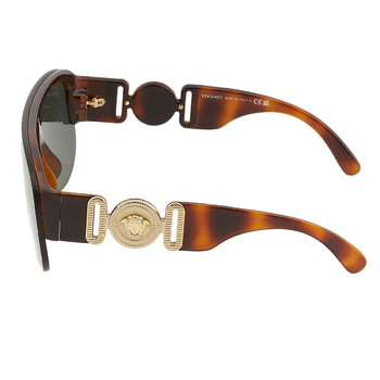 Versace Sunglasses. Series number: VE4391. Color code: 531771. Color: Green. Shape: Shield. Lens Width: 48 mm. Lens Bridge: 148 mm. Arm Length: 140 mm. 100% UV protection. Non-Polarized. Frame Material: Acrylic. Frame Color: Tortoise. Lenses Type: Dark Green. Rim Style: Full-Rim. UPC/EAN code: 8056597224789. Versace Dark Green Shield Men's Sunglasses VE4391 531771 48.