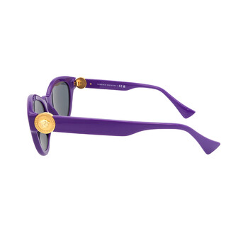 Versace Sunglasses. Series number: VE4435. Color code: 538787. Shape: Butterfly. Lens Width: 52 mm. Lens Bridge: 20 mm. Arm Length: 145 mm. 100% UV protection. Frame Material: Plastic. Frame Color: True Purpl. Lenses Type: Dark Grey. Rim Style: Full-Rim. UPC/EAN code: 8056597731065. Versace Dark Grey Butterfly Ladies Sunglasses VE4435 538787 52.