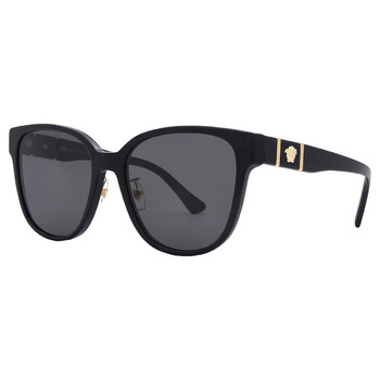 Versace Sunglasses. Series number: VE4460D. Color code: GB1/87. Shape: Butterfly. Lens Width: 57 mm. Lens Bridge: 18 mm. Arm Length: 140 mm. 100% UV protection. Non-Polarized. Frame Material: Acetate. Frame Color: Black. Lenses Type: Dark Grey. Rim Style: Full-Rim. UPC/EAN code: 8056597933872. Versace Dark Grey Butterfly Ladies Sunglasses VE4460D GB1/87 57.
