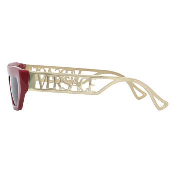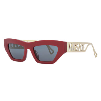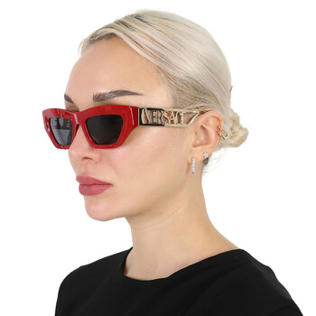 Versace Sunglasses. Series number: VE4432U. Color code: 538887. Shape: Cat Eye. Lens Width: 53 mm. Lens Bridge: 20 mm. Arm Length: 145 mm. 100% UV protection. Non-Polarized. Frame Material: Plastic. Frame Color: Red. Lenses Type: Dark Grey. Rim Style: Full-Rim. UPC/EAN code: 8056597764193. Versace Dark Grey Cat Eye Ladies Sunglasses VE4432U 538887 53.