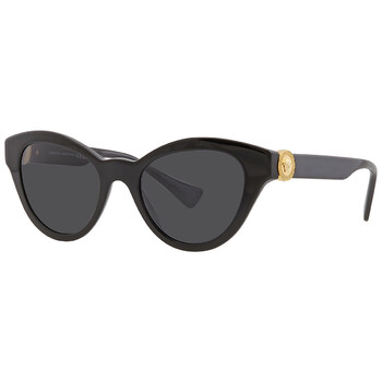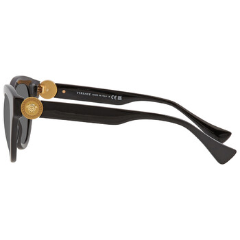 Versace Sunglasses. Series number: VE4435. Color code: GB1/87. Shape: Cat Eye. Lens Width: 52 mm. Lens Bridge: 20 mm. Arm Length: 145 mm. 100% UV protection. Frame Material: Plastic. Frame Color: Black. Lenses Type: Dark Grey. Rim Style: Full-Rim. UPC/EAN code: 8056597731034. Versace Dark Grey Cat Eye Ladies Sunglasses VE4435 GB1/87 52.