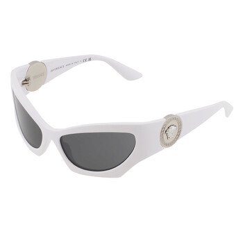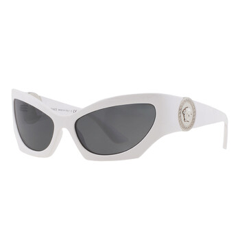 Versace Sunglasses. Series number: VE4450. Color code: 314/87. Shape: Cat Eye. Lens Width: 60 mm. Lens Bridge: 16 mm. Arm Length: 125 mm. 100% UV protection. Non-Polarized. Frame Material: Plastic. Frame Color: White. Lenses Type: Dark Grey. Rim Style: Full-Rim. UPC/EAN code: 8056597898232. Versace Dark Grey Cat Eye Ladies Sunglasses VE4450 314/87 60.