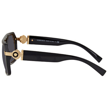 Versace Sunglasses. Series number: VE4399. Color code: GB1/87. Shape: Geometric. Lens Width: 58 mm. Lens Bridge: 18 mm. Arm Length: 145 mm. 100% UV protection. Non-Polarized. Frame Material: Plastic. Frame Color: Black. Lenses Type: Dark Grey. Rim Style: Full-Rim. UPC/EAN code: 8056597342520. Versace Dark Grey Geometric Men's Sunglasses VE4399 GB1/87 58.