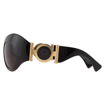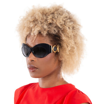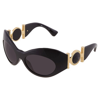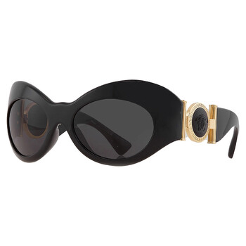 Versace Sunglasses. Series number: VE4462. Color code: GB1/87. Shape: Irregular. Lens Width: 58 mm. Lens Bridge: 20 mm. Arm Length: 115 mm. 100% UV protection. Non-Polarized. Frame Material: Acetate. Frame Color: Black. Lenses Type: Dark Grey. Rim Style: Full-Rim. UPC/EAN code: 8056597980913. Versace Dark Grey Irregular Ladies Sunglasses VE4462 GB1/87 58.