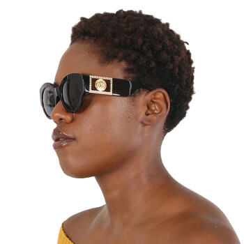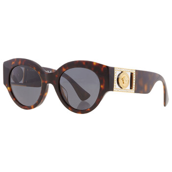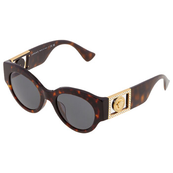 Versace Sunglasses. Series number: VE4438BF. Color code: 108/87. Shape: Oval. Lens Width: 52 mm. Lens Bridge: 22 mm. Arm Length: 145 mm. 100% UV protection. Frame Material: Plastic. Frame Color: Havana. Lenses Type: Dark Grey. Rim Style: Full-Rim. UPC/EAN code: 8056597762236. Versace Dark Grey Oval Ladies Sunglasses VE4438BF 108/87 52.