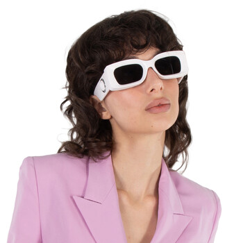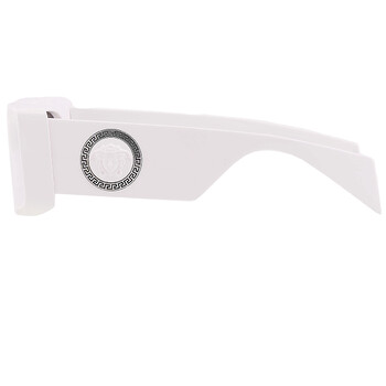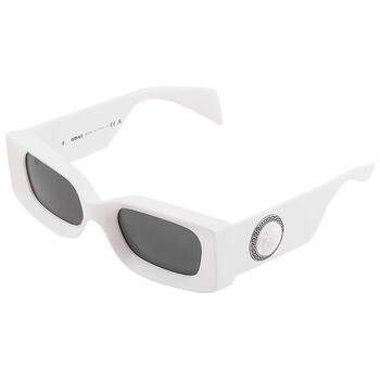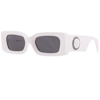 Versace Sunglasses. Series number: VE4474U. Color code: 314/87. Shape: Rectangular. Lens Width: 52 mm. Lens Bridge: 20 mm. Arm Length: 140 mm. 100% UV protection. Non-Polarized. Frame Material: Plastic. Frame Color: White. Lenses Type: Dark Grey. Rim Style: Full-Rim. UPC/EAN code: 8056262142646. Versace Dark Grey Rectangular Ladies Sunglasses VE4474U 314/87 52.