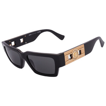 Versace Sunglasses. Series number: VE4459. Color code: GB1/87. Shape: Rectangular. Lens Width: 54 mm. Lens Bridge: 18 mm. Arm Length: 140 mm. 100% UV protection. Non-Polarized. Frame Material: Acetate. Frame Color: Black. Lenses Type: Dark Grey. Rim Style: Full-Rim. UPC/EAN code: 8056597922265. Versace Dark Grey Rectangular Men's Sunglasses VE4459 GB1/87 54.