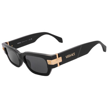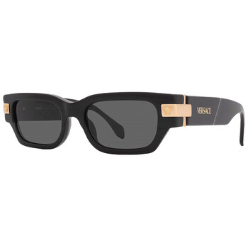 Versace Sunglasses. Series number: VE4465. Color code: GB1/87. Shape: Rectangular. Lens Width: 53 mm. Lens Bridge: 18 mm. Arm Length: 145 mm. 100% UV protection. Non-Polarized. Frame Material: Acetate. Frame Color: Black. Lenses Type: Dark Grey. Rim Style: Full-Rim. UPC/EAN code: 8056262013960. Versace Dark Grey Rectangular Men's Sunglasses VE4465 GB1/87 53.