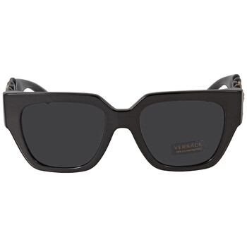 Versace Sunglasses. Series number: VE4409. Color code: GB1/87. Shape: Square. Lens Width: 53 mm. Lens Bridge: 19 mm. Arm Length: 140 mm. 100% UV protection. Non-Polarized. Frame Material: Plastic. Frame Color: Black. Lenses Type: Dark Grey. Rim Style: Full-Rim. UPC/EAN code: 8056597524292. Versace Dark Grey Square Ladies Sunglasses VE4409 GB1/87 53.