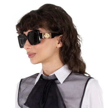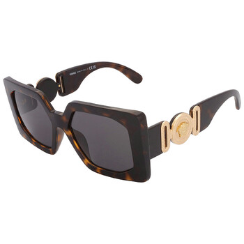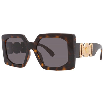 Versace Sunglasses. Series number: VE4478U. Color code: 108/87. Shape: Square. Lens Width: 55 mm. Lens Bridge: 17 mm. Arm Length: 140 mm. 100% UV protection. Non-Polarized. Frame Material: Plastic. Frame Color: Havana. Lenses Type: Dark Grey. Rim Style: Full-Rim. UPC/EAN code: 8056262221464. Versace Dark Grey Square Ladies Sunglasses VE4478U 108/87 55.