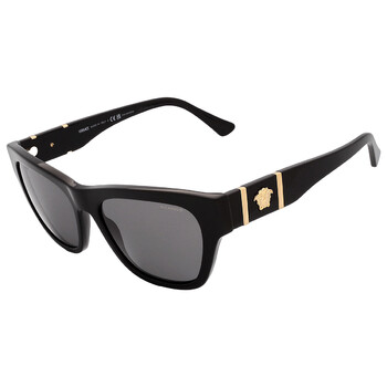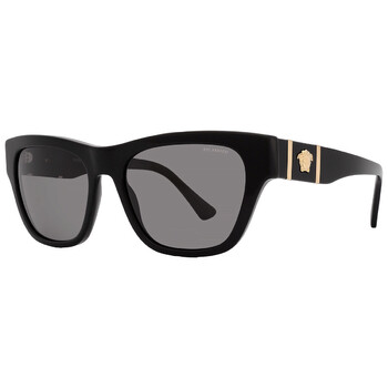 Versace Sunglasses. Series number: VE4457. Color code: GB1/81. Shape: Square. Lens Width: 55 mm. Lens Bridge: 18 mm. Arm Length: 145 mm. 100% UV protection. Non-Polarized. Frame Material: Plastic. Frame Color: Black. Lenses Type: Dark Grey. Rim Style: Full-Rim. UPC/EAN code: 8056597935548. Versace Dark Grey Square Men's Sunglasses VE4457 GB1/81 55.