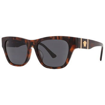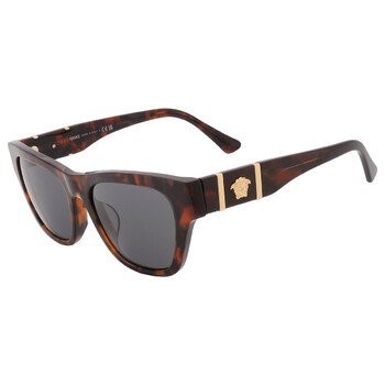 Versace Sunglasses. Series number: VE4457F. Color code: 542987. Shape: Square. Lens Width: 55 mm. Lens Bridge: 18 mm. Arm Length: 145 mm. 100% UV protection. Frame Material: Acetate. Frame Color: Havana. Lenses Type: Dark Grey. Rim Style: Full-Rim. UPC/EAN code: 8056597924849. Versace Dark Grey Square Men's Sunglasses VE4457F 542987 55.