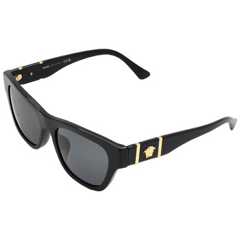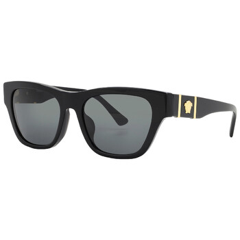 Versace Sunglasses. Series number: VE4457F. Color code: GB1/87. Shape: Square. Lens Width: 55 mm. Lens Bridge: 18 mm. Arm Length: 145 mm. 100% UV protection. Non-Polarized. Frame Material: Acetate. Frame Color: Black. Lenses Type: Dark Grey. Rim Style: Full-Rim. UPC/EAN code: 8056597924863. Versace Dark Grey Square Men's Sunglasses VE4457F GB1/87 55.
