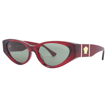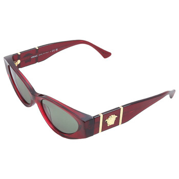 Versace Sunglasses. Series number: VE4454. Color code: 5430/2. Shape: Cat Eye. Lens Width: 55 mm. Lens Bridge: 18 mm. Arm Length: 140 mm. 100% UV protection. Non-Polarized. Frame Material: Acetate. Frame Color: Bordeaux. Lenses Type: Green. Rim Style: Full-Rim. UPC/EAN code: 8056597923163. Versace Green Cat Eye Ladies Sunglasses VE4454 5430/2 55.
