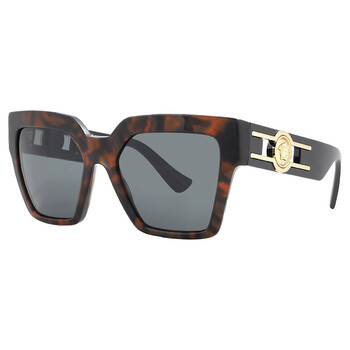 Versace Sunglasses. Series number: VE4458. Color code: 542987. Shape: Butterfly. Lens Width: 54 mm. Lens Bridge: 19 mm. Arm Length: 135 mm. 100% UV protection. Non-Polarized. Frame Material: Plastic. Frame Color: Havana. Lenses Type: Grey. Rim Style: Full-Rim. UPC/EAN code: 8056597922319. Versace Grey Butterfly Ladies Sunglasses VE4458 542987 54.