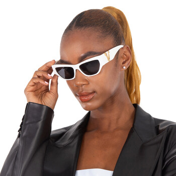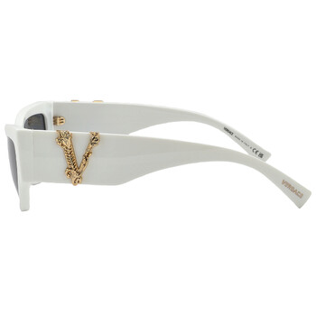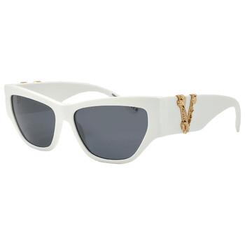 Versace Sunglasses. Series number: VE4383. Color code: 532787. Shape: Cat Eye. Lens Width: 56 mm. Lens Bridge: 15 mm. Arm Length: 140 mm. 100% UV protection. Non-Polarized. Frame Material: Plastic. Frame Color: White. Lenses Type: Grey. Rim Style: Full-Rim. UPC/EAN code: 8056597160599. Versace Grey Cat Eye Ladies Sunglasses VE4383 532787 56.