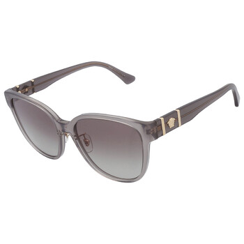 Versace Sunglasses. Series number: VE4460D. Color code: 540611. Shape: Square. Lens Width: 57 mm. Lens Bridge: 18 mm. Arm Length: 140 mm. 100% UV protection. Non-Polarized. Frame Material: Plastic. Frame Color: Opal Grey. Lenses Type: Grey Gradient. Rim Style: Full-Rim. UPC/EAN code: 8056597933865. Versace Grey Gradient Square Ladies Sunglasses VE4460D 540611 57.
