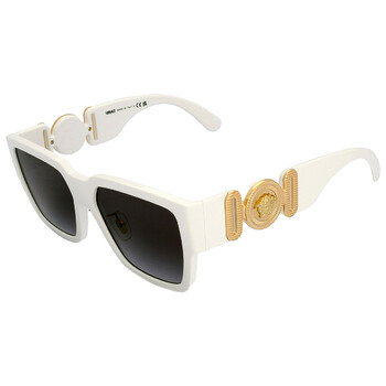 Versace Sunglasses. Series number: VE4483D. Color code: 314/8G. Shape: Square. Lens Width: 57 mm. Lens Bridge: 16 mm. Arm Length: 140 mm. 100% UV protection. Non-Polarized. Frame Material: Plastic. Frame Color: White. Lenses Type: Grey Gradient. Rim Style: Full-Rim. UPC/EAN code: 8056262244098. Versace Grey Gradient Square Men's Sunglasses VE4483D 314/8G 57.