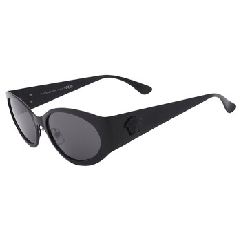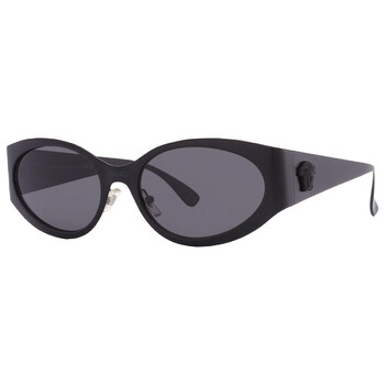 Versace Sunglasses. Series number: VE2263. Color code: 126187. Shape: Oval. Lens Width: 56 mm. Lens Bridge: 18 mm. Arm Length: 140 mm. 100% UV protection. Frame Material: Metal. Frame Color: Matte Black. Lenses Type: Grey. Rim Style: Full-Rim. UPC/EAN code: 8056597921572. Versace Grey Oval Ladies Sunglasses VE2263 126187 56.