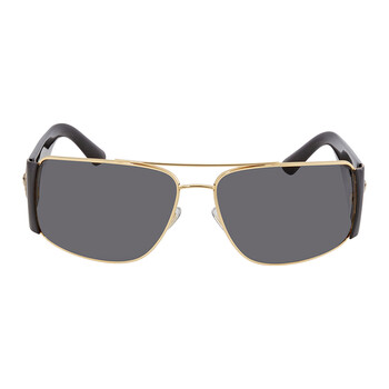 Versace Sunglasses. Series number: VE2163. Color code: 100287. Size: 63. Shape: Rectangular. Lens Width: 63 mm. Lens Bridge: 15 mm. Arm Length: 135 mm. 100% UV protection. Non-Polarized. Frame Material: Metal. Frame Color: Gold. Lenses Type: Grey. Rim Style: Full-Rim. UPC/EAN code: 8053672505382. Versace Grey Rectangular Men's Sunglasses VE2163 100287 63.