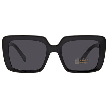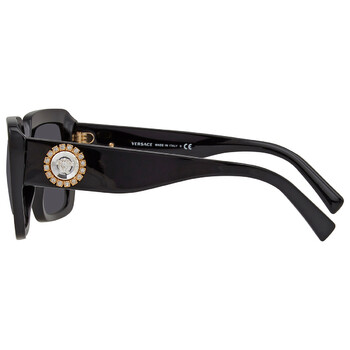Versace Sunglasses. Series number: VE4384B. Color code: GB1/87. Shape: Square. Lens Width: 54 mm. Lens Bridge: 19 mm. Arm Length: 140 mm. 100% UV protection. Non-Polarized. Frame Material: Plastic. Frame Color: Black. Lenses Type: Grey. Rim Style: Full-Rim. UPC/EAN code: 8056597160681. Versace Grey Square Ladies Sunglasses VE4384B GB1/87 54.