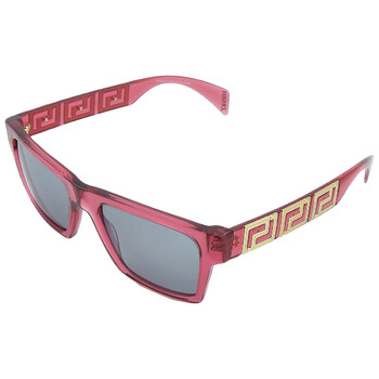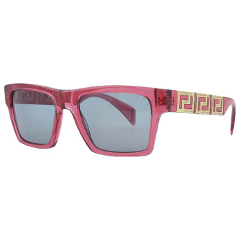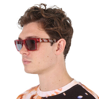 Versace Sunglasses. Series number: VE4445. Color code: 5409/1. Shape: Square. Lens Width: 54 mm. Lens Bridge: 18 mm. Arm Length: 145 mm. 100% UV protection. Non-Polarized. Frame Material: Acetate. Frame Color: Transparent Red. Lenses Type: Grey. Rim Style: Full-Rim. UPC/EAN code: 8056597837941. Versace Grey Square Men's Sunglasses VE4445 5409/1 54.