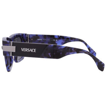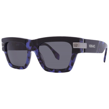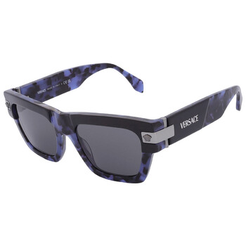 Versace Sunglasses. Series number: VE4464. Color code: 545887. Shape: Square. Lens Width: 55 mm. Lens Bridge: 20 mm. Arm Length: 145 mm. 100% UV protection. Non-Polarized. Frame Material: Acetate. Frame Color: Blue Havana. Lenses Type: Grey. Rim Style: Full-Rim. UPC/EAN code: 8056262017203. Versace Grey Square Men's Sunglasses VE4464 545887 55.