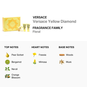 Elevate your fragrance collection or give the gift of luxury with the Versace Yellow Diamond Gift Set. Please note: This item is only available for shipment within the Contiguous United States and Canada. Barcode: 8011003816873.
