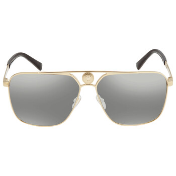 Versace Sunglasses. Series number: VE2238. Color code: 12526G. Size: 61. Shape: Rectangular. Lens Width: 61 mm. Lens Bridge: 13 mm. Arm Length: 140 mm. 100% UV protection. Non-Polarized. Frame Material: Metal. Frame Color: Pale Gold. Lenses Type: Light Gray Mirror Silver. Rim Style: Full-Rim. UPC/EAN code: 8056597523486. Versace Light Gray Mirror Silver Rectangular Men's Sunglasses VE2238 12526G 61.