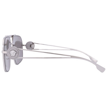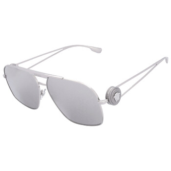 Versace Sunglasses. Series number: VE2269. Color code: 10006G. Shape: Navigator. Lens Width: 62 mm. Lens Bridge: 13 mm. Arm Length: 130 mm. 100% UV protection. Non-Polarized. Frame Material: Metal. Frame Color: Silver. Lenses Type: Light Grey Mirror Silver. Rim Style: Full-Rim. UPC/EAN code: 8056262032060. Versace Light Grey Mirror Silver Navigator Men's Sunglasses VE2269 10006G 62.