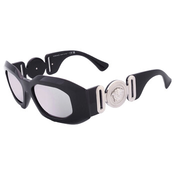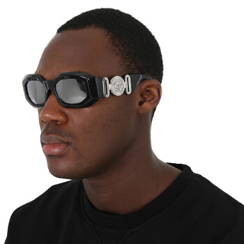 Versace Sunglasses. Series number: VE4425U. Color code: 54226G. Shape: Irregular. Lens Width: 54 mm. Lens Bridge: 18 mm. Arm Length: 145 mm. 100% UV protection. Frame Material: Injected. Frame Color: Black. Lenses Type: Light Grey Mirrored Silver. Rim Style: Full-Rim. UPC/EAN code: 8056597973960. Versace Light Grey Mirrored Silver Irregular Men's Sunglasses VE4425U 54226G 54.