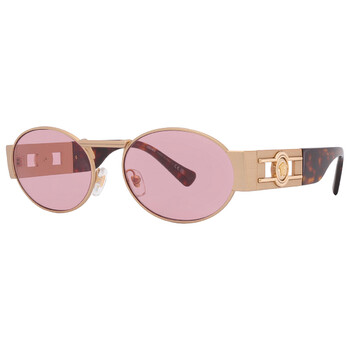 Versace Sunglasses. Series number: VE2264. Color code: 100284. Shape: Oval. Lens Width: 56 mm. Lens Bridge: 18 mm. Arm Length: 140 mm. 100% UV protection. Non-Polarized. Frame Material: Metal. Frame Color: Matte Gold. Lenses Type: Light Violey. Rim Style: Full-Rim. UPC/EAN code: 8056597922364. Versace Light Violey Oval Unisex Sunglasses VE2264 100284 56.