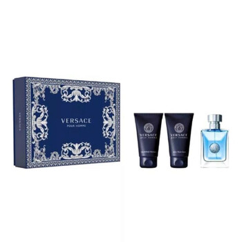 Introducing the Versace Pour Homme, a distinguished fragrance set exclusively for men. Crafted by the esteemed design house of Versace, this scent was first unveiled in 2008 and has since become a favourite amongst discerning gentlemen. This 3-piece set (8011003879311) includes a 1.7oz Eau De Toilette spray, a 1.7oz Hair & Body Shampoo, and a 1.7oz After Shave Balm, making it a perfect gift for any occasion.