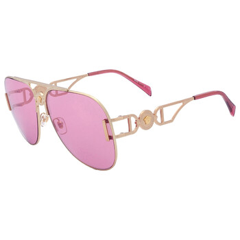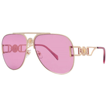 Versace Sunglasses. Series number: VE2255. Color code: 1002A4. Shape: Pilot. Lens Width: 63 mm. Lens Bridge: 13 mm. Arm Length: 145 mm. 100% UV protection. Frame Material: Metal. Frame Color: Gold. Lenses Type: Pink Mirrored Internal Silver. Rim Style: Full-Rim. UPC/EAN code: 8056597861052. Versace Pink Mirrored Internal Silver Pilot Unisex Sunglasses VE2255 1002A4 63.