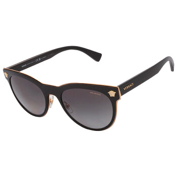 Versace Sunglasses. Series number: VE2198. Color code: 1002T3. Shape: Phantos. Lens Width: 54 mm. Lens Bridge: 20 mm. Arm Length: 145 mm. 100% UV protection. Polarized. Frame Material: Metal;Plastic. Frame Color: Black. Lenses Type: Polarized Grey Gradient. Rim Style: Full-Rim. UPC/EAN code: 8053672916065. Versace Polarized Grey Gradient Phantos Ladies Sunglasses VE2198 1002T3 54.