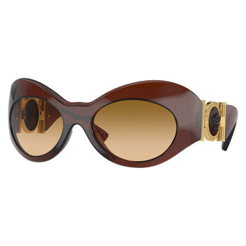 Versace Sunglasses. Series number: VE4462. Color code: 54462L. Shape: Irregular. Lens Width: 58 mm. Lens Bridge: 20 mm. Arm Length: 115 mm. Frame Material: Plastic. Frame Color: Transparent Brown. Lenses Type: Yellow Gradient Brown. Rim Style: Full-Rim. UPC/EAN code: 8056597980883. Versace Yellow Gradient Brown Irregular Ladies Sunglasses VE4462 54462L 58.