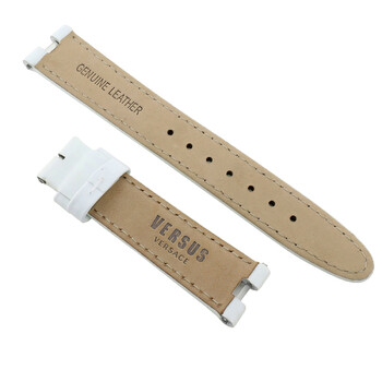 White leather with zipper and versus lion safety pin strap. Band width: 18 mm. Tang clasp. Versus By Versace 18 mm mm Watch Band VRS-SOB010014.