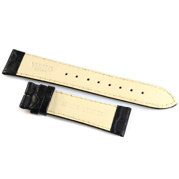 Black leather strap. Band width: 21 mm, band length: 8 inches. Tang clasp. Versus By Versace 21 mm mm Watch Band VRS-SGC050012.