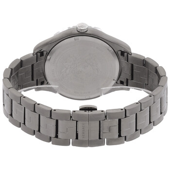 Gunmetal stainless steel case and bracelet. Black dial with silver-tone hands and index hour markers. Minute markers around the outer rim. Dial Type: Analog. Luminescent hands and markers. Date display at the 3 o'clock position. Quartz movement. Scratch resistant sapphire crystal. Round case shape, case size: 42 mm. Deployment with push button release clasp. Water resistant at 50 meters / 165 feet. Functions: date, hour, minute, second. Watch label: Swiss Made. Versus by Versace Quartz Black Dial Men's Watch VE3A00620.