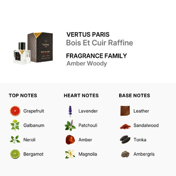 Packaged in a sleek 3.38 oz spray bottle, Vertus Paris Bois Et Cuir Raffine is a perfect addition to any fragrance collection. Whether you're a fragrance connoisseur or simply looking for something special, this Eau de Parfum delivers a luxurious scent experience from start to finish.
