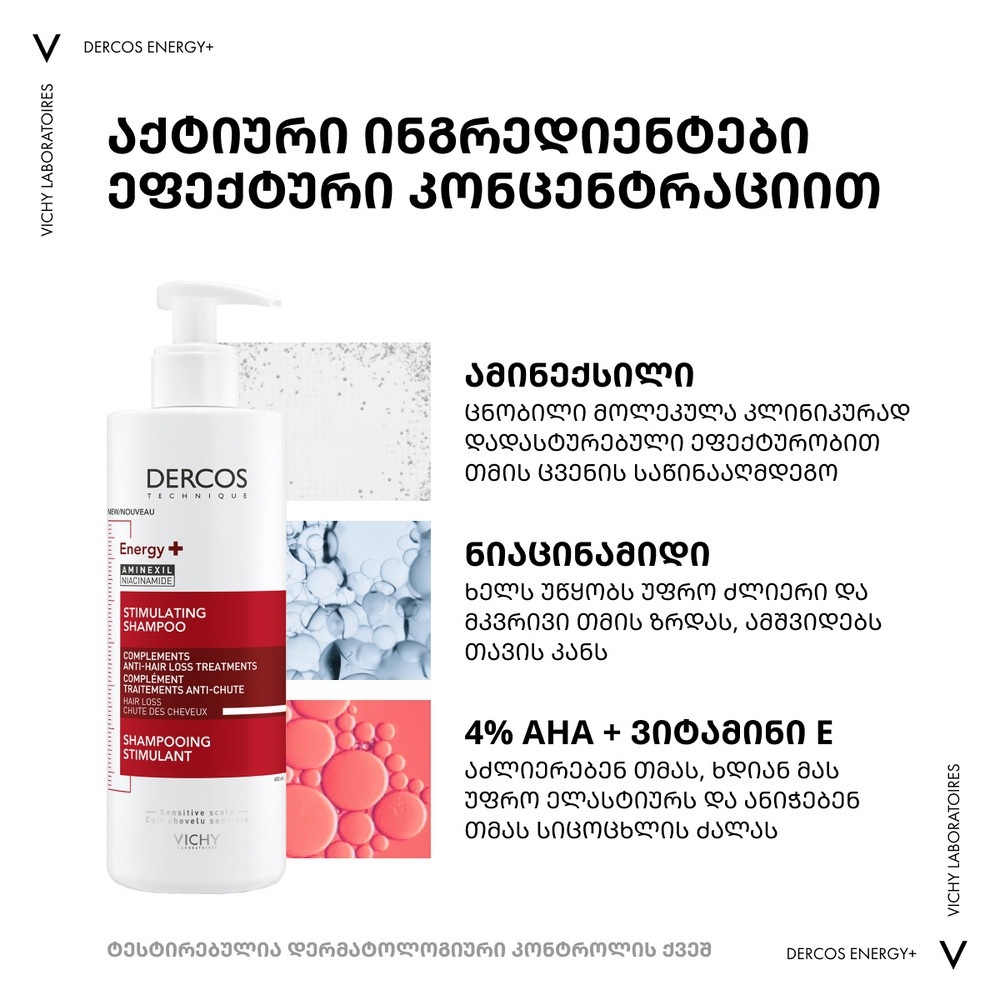 Vichy Dercos Energy+ შამპუნი თმის ცვენის საწინააღმდეგოდ 400 მლ