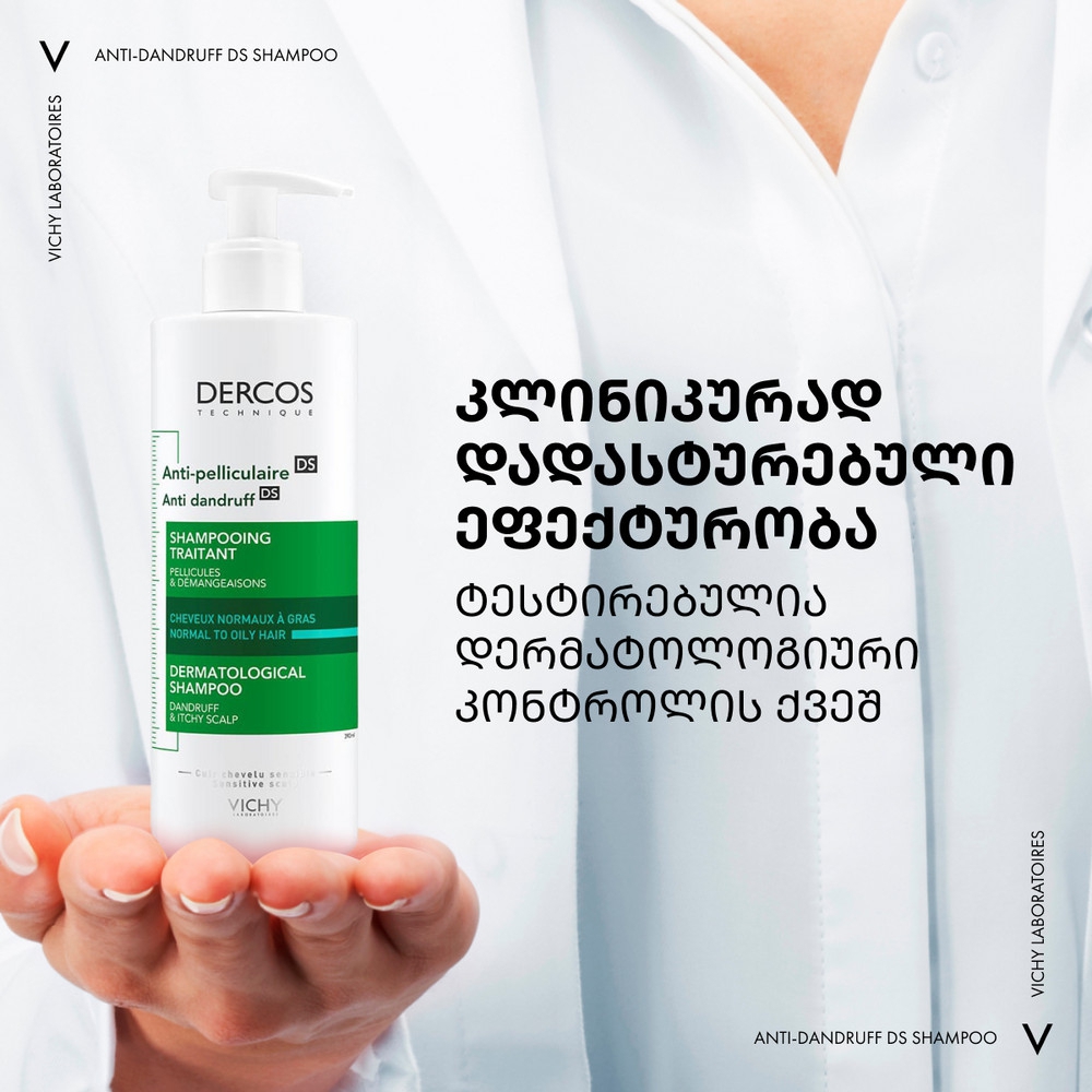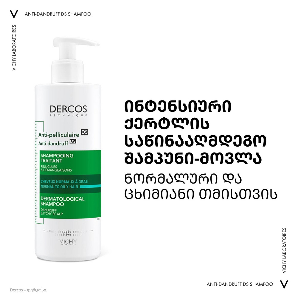 Vichy Dercos ქერტლის საწინააღმდეგო ინტენსიური შამპუნი ნორმალური და ცხიმიანი თმისთვის