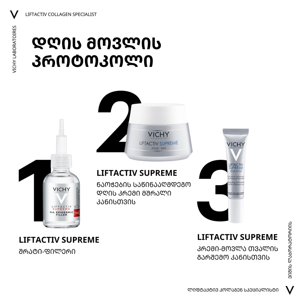 Vichy Liftactiv Supreme ნაოჭების საწინააღმდეგო კრემი მშრალი კანის გამკვრივებისა და დატენიანებისთვის 50 მლ