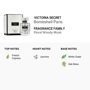 The scent opens with a refreshing burst of French cypress, giving way to a heart of romantic jasmine that adds a soft floral touch. As the fragrance settles, warm base notes of white cedar and oak moss create a lasting impression that is both earthy and sophisticated. This enchanting blend makes Bombshell Paris the perfect signature scent for day or night.
