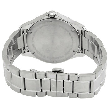 Stainless steel case with a stainless steel bracelet. Fixed stainless steel bezel. Blue dial with silver-tone hands and index hour markers. Minute markers around the outer rim. Dial Type: Analog. Date display at the 3 o'clock position. Ronda caliber 715 quartz movement. Scratch resistant sapphire crystal. Solid case back. Round case shape. Case size: 40 mm, case thickness: 9 mm. Band width: 20 mm. Deployment clasp with a push button release. Water resistant at 100 meters / 330 feet. Functions: date, hour, minute, second. Alliance Series. Casual watch style. Watch label: Swiss Made. Victorinox Alliance Quartz Blue Dial Men's Watch 241910.1.